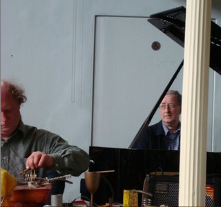 Martin Stephenson was asked to put on a show alongside the film The Haint of the Budded Rose, which was about Charlie Poole, or at least, the making of a play about Charlie Poole. So Gary O'Dea, Steph Macleod and myself each played short sets, and then Martin, Jim Morrison on fiddle and Brian (he's got the guitar shop in Newcastle) got up to do a much longer set. Oh, the venue is beautiful! The room was light and airy, very high, with a polished wooden floor and strange matchstick-patterned wooden walls which made it acoustically perfect; the audience was totally silent, but very smiley, and the whole thing went off smoothly and goodnaturedly, with Martin's sometimes percussionist Fin McCardle picking us up, Shane Fonteyne doing a bit of washboarding for a couple of songs, and a lovely sunny day outside.