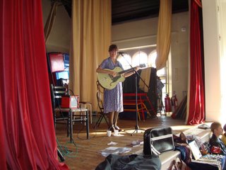 What a funny turnaround last night ended up as. The promoters had asked me to get there at 6, which I did, only to find a massive pub full of football fans roaring at a HUGE screen, steaming in their own enthusiasm and beer. 'Where does the music happen?' I asked the bar staff. 'The stage is there, behind the screen, but there's no-one here yet.' So I sat like a pretentious twat working on some lyrics; I hadn't brought enough money out for more than one lemonade; eventually, the football fans disappeared in clumps, with their scarves and their red boozy faces, to be replaced by a cavernous silence. The huge screen slipped away too, and I went and sat by the stage, wondering if the whole set-up was a spoof. No, there was a young chap who appeared to be setting up a P.A. I spoke to him and he asked if I wanted a sound check; so far so good. Someone else wandered in with a guitar, and they did a little soundcheck too (competitively short soundchecks seem to be becoming the in thing these days!) A worried looking man with a beard zipped back and forth at the back of the pub, holding a mobile phone to his ear; that normally happens when acts are pulling out at the last minute. A woman with bright red hair appeared with a bag with a bass drum pedal in it; next, she appeared on the stage with a guitar. I started sulking. Why hadn't anyone said hello? Just at that point, when I was thinking about going home and watching Frost, the worried-looking man came over and said hello and asked if I'd mind going on later than planned and playing for longer. I said no, but meant yes, and then the woman with red hair got up and started to play. Well, I liked Gabby's songs; I think you could say they were kooky, and very dramatic. She has a brilliantly dynamic singing voice ( a little too dynamic for a couple of women who took their dinner plates next door) and her songs are structured like little plays that incorporate speech and waiting. But they were unusual, and interesting to listen to. Then it was my turn, and I was glad I'd gone on late because in walked someone I have not seen for probably thirty years- Paul Gilroy! Remember him, Joby? He came and tried out for guitar with Joby and the Hooligans all those years ago in Brighton. And there he was, with his partner. In the intervening time he has become an established writer (There Ain't No Black in the Union Jack amongst lots of others). Two years ago I invited him to come to talk at the University of the West but he got the message too late; and now here he was on a glum night in Finsbury Park! As soon as they walked in, everything else changed too. An audience appeared, who had come to listen. The sound was superb: it's a good P.A. I really enjoyed the gig, in the end. The promoter said he loved my guitar playing (which was great to hear as I felt I was a bit below par, having lacerated my fingers with sewing the night before), quite a few people in the audience told me how much they liked it, and it was nice not to have to get it all over with in three songs. They were a smiley contented audience to play to, the vibe was cool man, and it was lovely to play to Paul and his partner too. I hope to play there again; meanwhile the next gig is at Viva Viva (now revamped) on 13th November.